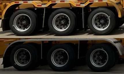 1.该车用于运输40英尺集装箱; 2.总长/牵引销至最前端距离/轴距/后悬(mm)/前回转半径(mm)对应关系: 车宽2480mm时: 12480/934/7200+1310+1310/1726/1552; 12480/650/7200+1310+1310/2010/1401; 13000/1000/7200+1310+1310/2180/1593 车宽2550mm时: 12480/934/7200+1310+1310/1726/1581; 12480/650/7200+1310+1310/2010/1431; 13000/1000/7200+1310+1310/2180/1620 3.牵引销处车架总高度(mm)为130mm,150mm,170mm,190mm.选装前边梁样式及导向块.选装4锁,14锁样式,选装大梁异型孔样式.选装挡泥板样式; 4.整备质量(kg)/额定载质量(Kg)/整备状态轴荷分配(前轴/后轴)(kg)对应关系: 6580/33420/2632/3948; 6300/33700/2520/3780; 6000/34000/2400/3600. 5.选装非独立式空气悬架. |