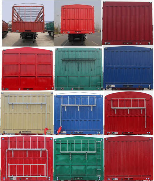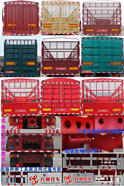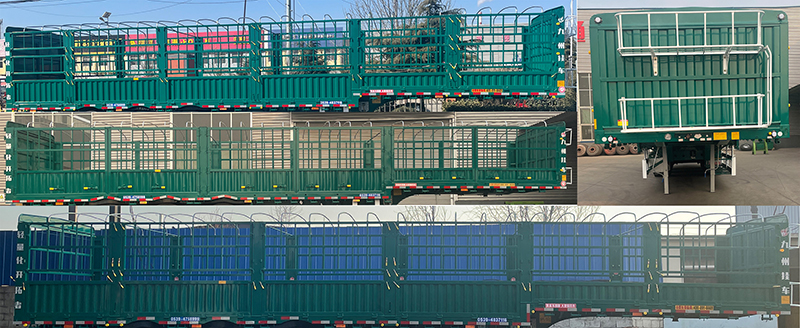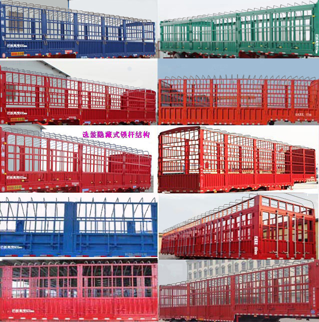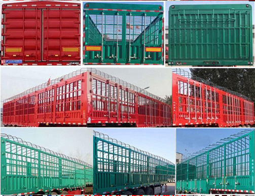 1,车厢底板至仓栅顶部高度为1800mm,2000mm,2200mm,2400mm,2600mm.对应整车高度分别为3050,3150mm;3250,3350mm;3450,3550mm;3650,3750mm;3850,3950mm;2,选装不同形式栅栏,整车货箱栏板样式可选装方管平板式、平板十字花交叉式、横瓦楞式或方管十字花式;选装花栏式后开门,三扇式后开门,后开门厢板样式可选装方管平板式、平板十字花交叉式、横瓦楞式或方管十字花式;选装半封闭前龙门架(封闭部分的高度≥500mm),选装前龙门架中间加2道方管;前龙门架厢板样式可选装方管平板式、平板十字花交叉式、横瓦楞式或方管十字花式;选装对开门锁杆样式或对开门半锁杆样式(或隐藏式锁杆样式);选装每节厢板3道锁杆;车厢立柱选装内插或外插样式;后推车勾样式选装勾式或台阶式;侧面厢板开数选装5开门或6开门;选装花栏样式,可选装一层仓栅、两层仓栅、三层仓栅.车身纵梁可选装无孔、圆形孔或碟形孔;3,车长/轴距/后悬/牵引销中心至车辆最前端的距离//半挂车前回转半径/牵引销中心轴线到半挂车辆长度最后端的水平距离/(mm)的对应关系:13000/6900+1310+1310/2480/1000/(1620,1600)/12000;13000/6900+1310+1310/2380/1100/(1683,1665)/11900;13000/6900+1310+1310/2280/1200/(1750,1732)/11800;13000/6900+1310+1310/2180/1300/(1820,1803)/11700;13000/6700+1310+1310/2280/1400/(1893,1876)/11600;12500/6700+1310+1310/2180/1000/(1620,1600)/11500;12500/6500+1310+1310/2280/1100/(1683,1665)/11400;12500/6500+1310+1310/2180/1200/(1750,1732)/11300;12500/6500+1310+1310/2080/1300/(1820,1803)/11200;12500/6300+1310+1310/2180/1400/(1893,1876)/11100;整备质量(kg)/额定载质量(kg)的对应关系:6400/33600 |