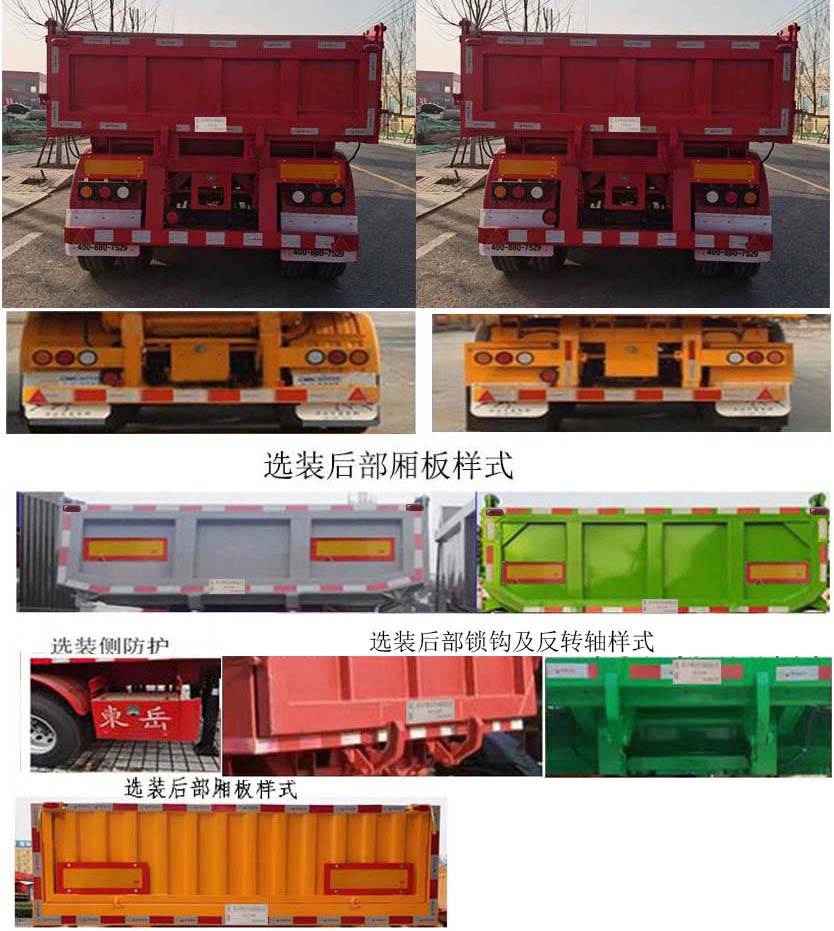 1、该车为后翻;选装侧面栏板样式;选装后部厢板;后锁钩样式,选装油箱位置;后翻转支架样式;后尾样式; 2、车长/牵引销中心轴线到车辆最前端的距离/轴距/后悬/前回转半径/牵引销中心轴线到半挂车最后端水平距离的对应关系为: 10500/1030/5300+1310+1310/1550/1640/9470; 10000/930/5100+1310+1310/1350/1580/9070; 10500/880/5500+1310+1310/1500/1549/9620. 3.外廓尺寸长/货厢栏板内长对应关系为:10500/9810,9760;10000/9310,9260. |