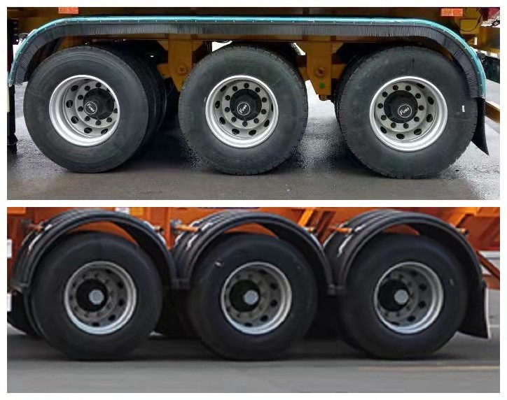 该车用于运输30尺集装箱,牵引销处的车架总高度为90mm,160mm,192mm;选装挡泥板样式; 整备质量与额定载质量对应关系为:4500/35500,4300/35700; 车辆长度/轴距/后悬/牵引销中心到车辆最前端距离/车宽/半挂车前回转半径/牵销中心轴线到半挂车辆长度最后端的水平距离(mm)的对应关系: 9605/5030+1310+1310/1155/800/2550/1505/8805; 9605/5030+1310+1310/1155/800/2500/1484/8805; 9605/5030+1310+1310/1155/800/2480/1476/8805; 10500/5230+1310+1310/1155/1495/2550/1965/9005; 10500/5230+1310+1310/1155/1495/2500/1949/9005; 10500/5230+1310+1310/1155/1495/2480/1942/9005; 11000/5430+1310+1310/1700/1250/2550/1786/9750; 11000/5430+1310+1310/1700/1250/2500/1768/9750; 11000/5430+1310+1310/1700/1250/2480/1761/9750; 三根横撑侧防护样式仅在5320,5030轴距下使用,两根横撑侧防护样式仅在5430,5230,5030轴距下使用. |