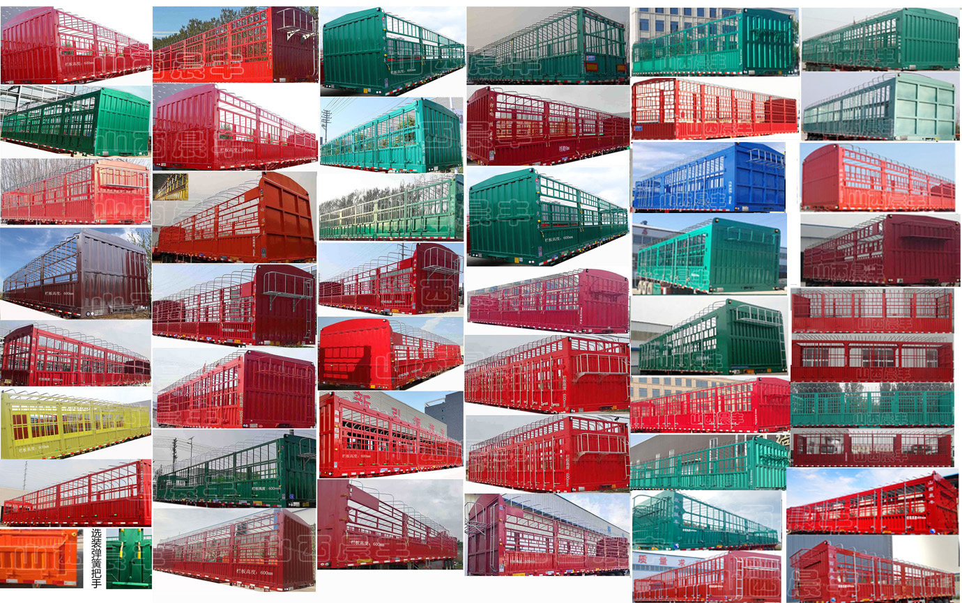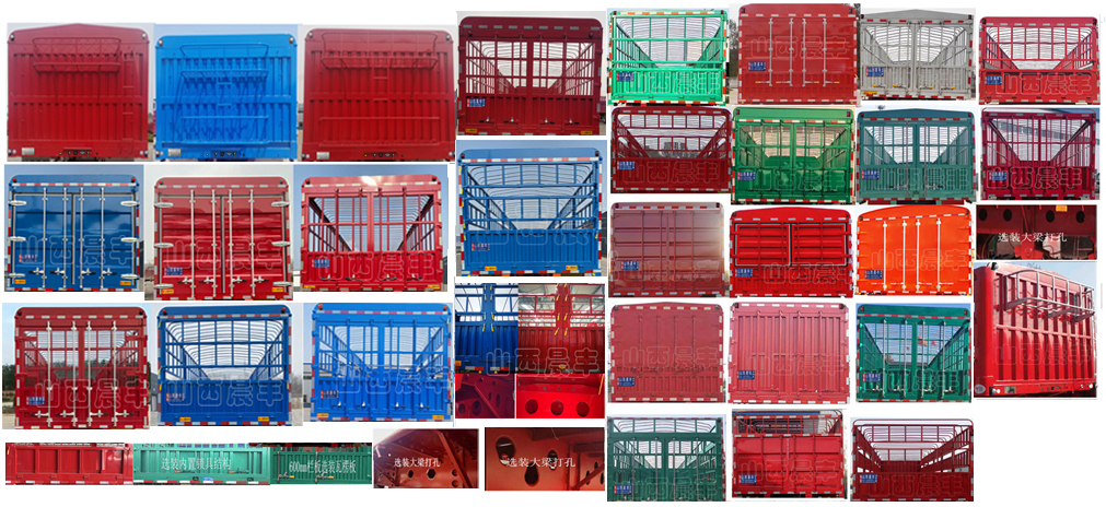 1.车厢底板至仓栅顶部的高度为1800mm,2000mm,2200mm,2400mm;选装仓栅结构为一层/二层/三层结构(选装一层仓栅结构时,车厢底板到顶部高度为1800mm),栏板均为竖瓦楞结构,选装长锁杆/短锁杆/隐形锁杆的对开门结构,选装后仓栅结构:后部选装花栏式后门,三开扇式后门,对开式半封闭后门,对开全封闭样式,后门厢板均为竖瓦楞.选装前挡板样式,选装大梁异型孔结构.选装弹簧把手,选装内置锁具,选装圆形立柱样式,选装侧面防护样式;选装号牌板样式; 2,车长/轴距/后悬/牵引销中心到车辆最前端距离/半挂车前回转半径/牵引销中心轴线到半挂车辆长度最后端的水平距离/外廓尺寸长/车辆前轴到货箱前壁内侧的距离(mm)的对应关系: 13000/6880+1310+1310/2300/1200/1750/11800/12850/1050, 13000/6780+1310+1310/2300/1300/1820/11700/12850/1150, 13000/6680+1310+1310/2300/1400/1893/11600/12850/1250, 12500/6500+1310+1310/2100/1280/1806/11220/12350/1130, 12000/6280+1310+1310/1800/1300/1820/10700/11850/1150, 3,整备质量(kg)/额定载质量(kg)的对应关系:6800/33200,6500/33500; |