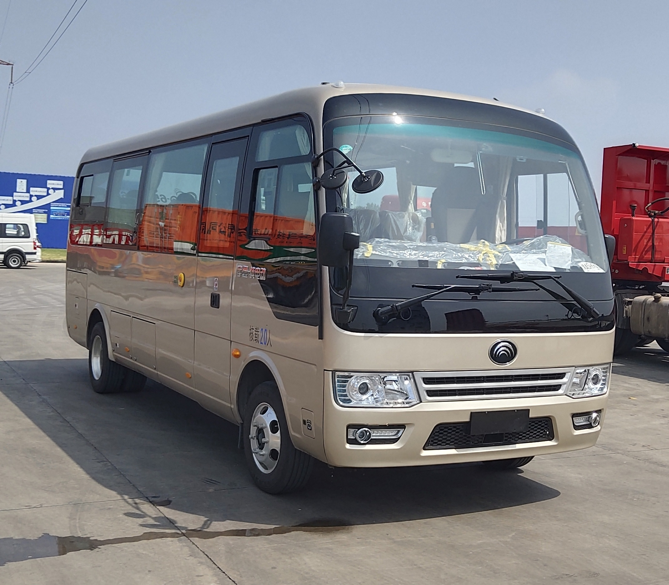| 备注 | 1.可取消空调,取消空调时空调调节方式仅有制暖一种;2.该车可选装顶置空调或内置空调,选装顶置空调时车高为3060mm,选装无空调或内置空调加装换气扇时车高为2945mm,选装无空调或内置空调无换气扇时车高为2895mm;3.高配时整备质量为6000kg,中高配时整备质量5800kg,中配时整备质量5600kg,低配时整备质量5400kg;4.可选装其它型式的侧窗结构;5.可选装外摆门、折叠门;6.该车装司机门;7.该车无地板下置贯通式行李舱,行李舱约束装置不适用;8.安全出口的组成为:3个应急窗、1个乘客门、1个安全顶窗;9.可选装不同型号胎压监测或报警装置,视频监控系统及卫星定位系统和应急锤;10.可选装其他型式前围造型. | ||||||||||