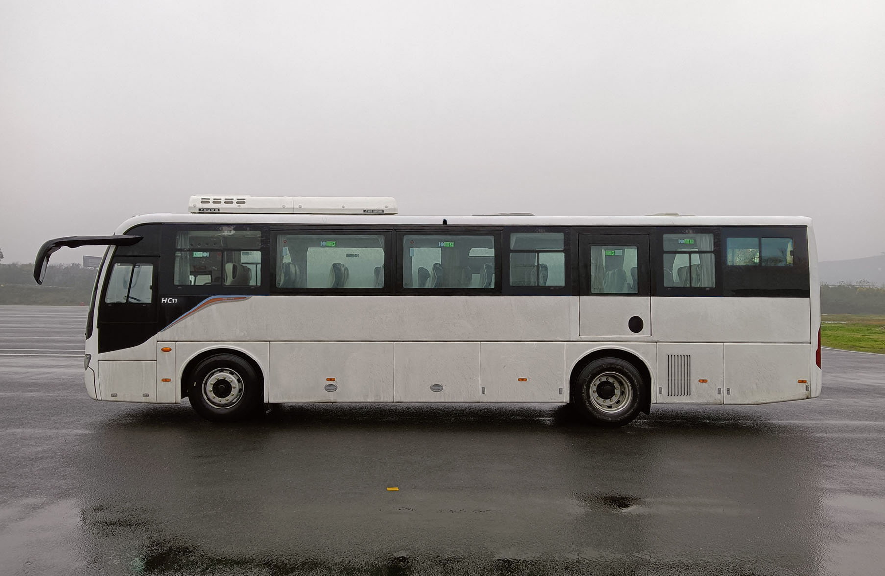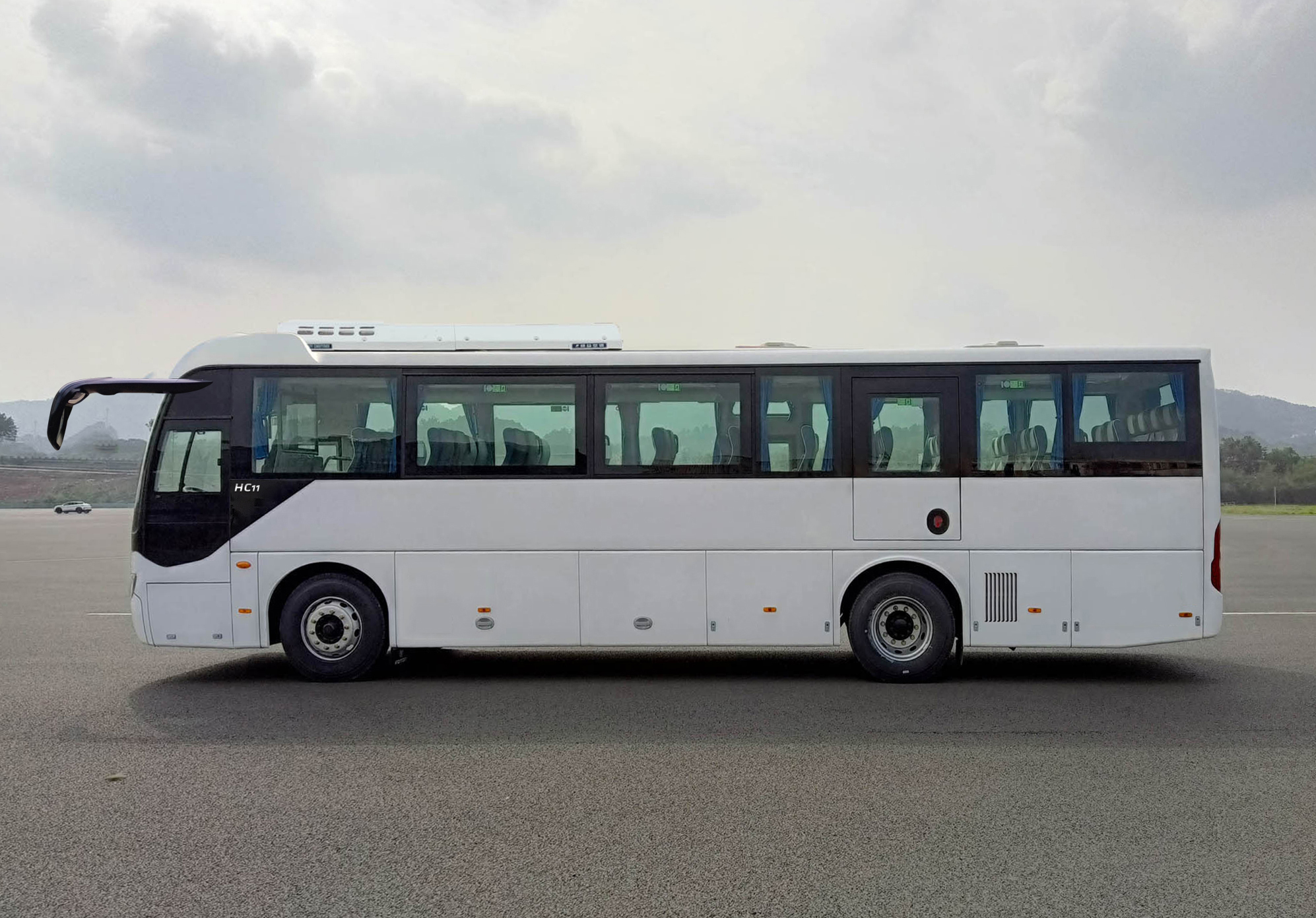 | 备注 | 1. 普通配置时整备质量为11500Kg,标准配置时整备质量为11750Kg,豪华配置时整备质量为11950Kg;2.可选装不同形式侧窗,乘客门可选装推拉窗,可选装乘客门下小玻璃,两侧舱门可选装或取消散热孔,侧舱门可选择不同形式或不同数量的散热孔,可选装侧围装饰件,可选装其它型式后视镜,可选装路牌,可选装前围高顶造型,可选装轮护面造型;3.安全出口数量11个(7个应急窗,2个乘客门,1个应急门,2个安全顶窗) | ||||||||||