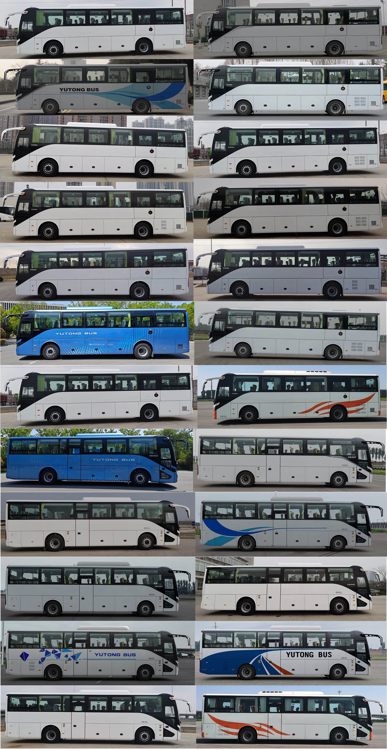 1.可取消空调,安装顶置空调时的整车高度为3475,取消顶置空调时的整车高度为3310mm,取消空调时空气调节方式只有采暖一种;2.普通配置时整备质量为9350kg,标准配置时整备质量为9600kg或9900kg,中档配置时整备质量为10200kg或10500kg,高档配置时整备质量为10700kg;3.可选装其他型式舱门,舱门可选装散热格栅或其他型式格栅;4.可选装其他型式侧围装饰件,可取消侧围装饰件;5.可选装其他型式后视镜;6.可选装其他型式前后围局部造型7.除外推式应急窗外.可选装其它侧窗形式,选装不同型式前保险杠;8.安全出口的组成为:5个应急窗、2个乘客门、1个应急门、2个安全顶窗;9.最高车速90km/h或100km/h,主减速比6.143仅对应90km/h最高车速10.可选装不同型号的视频监控系统、卫星定位系统车载终端、应急锤、爆胎应急装置.11.2+2座椅布置对应的座位数为24-48,2+1座椅布置对应的座位数为24-35. |