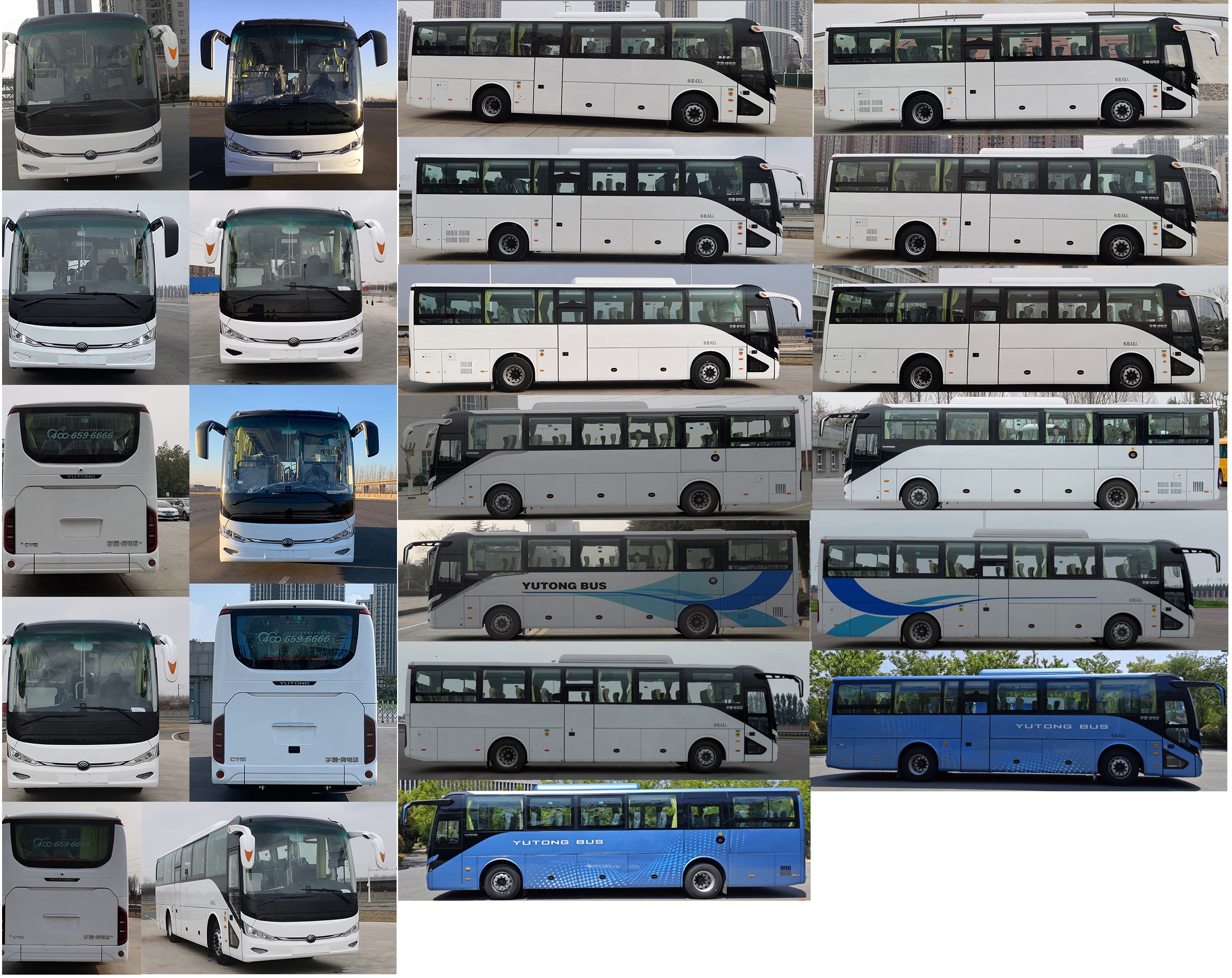 1.可取消空调,安装顶置空调时的整车高度为3475,取消顶置空调时的整车高度为3310mm,取消空调时空气调节方式只有采暖一种;2.普通配置时整备质量为9350kg,标准配置时整备质量为9600kg或9900kg,中档配置时整备质量为10200kg或10500kg,高档配置时整备质量为10700kg;3.可选装其他型式舱门,舱门可选装散热格栅或其他型式格栅;4.可选装其他型式侧围装饰件,可取消侧围装饰件;5.可选装其他型式后视镜;6.可选装其他型式前后围局部造型7.除外推式应急窗外.可选装其它侧窗形式,选装不同型式前保险杠;8.安全出口的组成为:5个应急窗、2个乘客门、1个应急门、2个安全顶窗;9.最高车速90km/h或100km/h,主减速比6.143仅对应90km/h最高车速10.可选装不同型号的视频监控系统、卫星定位系统车载终端、应急锤、爆胎应急装置.11.2+2座椅布置对应的座位数为24-48,2+1座椅布置对应的座位数为24-35. |