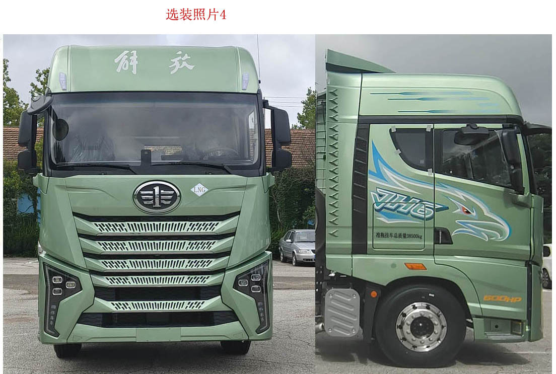 选装不带导流罩.选装新前脸驾驶室(选装照片3、选装照片4).选装新前脸驾驶室(选装照片3、选装照片4)仅对应3800+1350,4200+1350轴距.选装裙板结构.高度对应关系:3930,3980,3960对应高顶导流罩,3630,3790,3805,3840对应高顶驾驶室;选装双气瓶.整车长度mm/轴距mm/前悬mm对应关系:1.7415/3800/1495,2.7815/4200/1495,3.7435/3800/1515,4.7835/4200/1515,5.8115/4500/1495,6.8315/4700/1495,7.8135/4200/1515,8.8335/4700/1515.后轴装备空气悬架仅匹配轮胎12R22.5 18PR,对应牵引座承载面离地高度1300mm.轴距4500,4700仅匹配后桥空气悬架状态.当车辆尺寸为7415,7815,7435,7835×3630,3790,3930,3980,3805,3840,3960时,选装灯具,样式为选装照片3.当车辆尺寸为7415,7815,7435,7835×2500,2550×3630,3790,3930,3980,3805,3840,3960时,选装灯具,样式为选装照片4. |