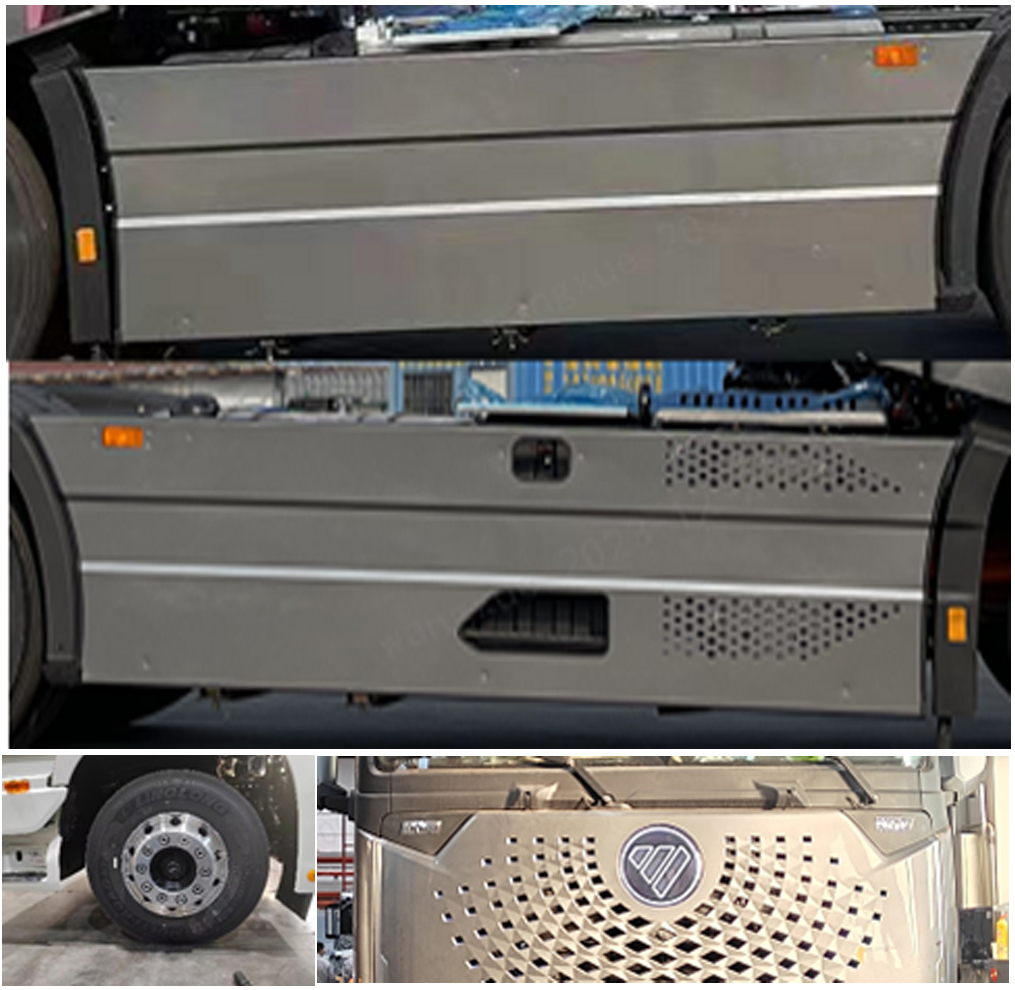 1、选装前围饰件,选装平顶/新平顶驾驶室,高顶驾驶室选装导流罩,且导流罩可去掉,高顶选装高地板驾驶室,高顶驾驶室选装驻车空调,且驻车空调可去掉,选装不同形式油箱,选装电瓶箱布置型式.选装电瓶箱踏梯.选装角板,选装挡雨眉.最高车速为110km/h时,安装全盘制动器,安装电子制动系统(EBS),安装自动紧急制动系统(AEBS),安装轮胎气压监测系统,安装爆胎应急安全装置,安装驾驶室轮胎爆胎应急安全装置标示;最高车速为89km/h时,安装全鼓制动器,安装防抱制动装置(ABS),不装自动紧急制动系统(AEBS),选装轮胎气压监测系统,选装爆胎应急安全装置,选装驾驶室轮胎爆胎应急安全装置标示,选装标识,选装车轮护罩外观,选装后处理外观. 2、电子稳定性控制系统(ESC)型号CM-ESC只装配最高车速89km/h的车型.3、轮胎315/70R22.5 20PR/315/70R22.5 18PR只装配最高车速89km/h的车型. 3、整车外廓尺寸高与选装对应关系为:平顶驾驶室对应2900;高顶驾驶室不带导流罩对应3460,3530,3590,3660,3730,3800,3870,3950;高顶驾驶室带导流罩对应3660,3730,3800,3870,3950.(单位:mm). |