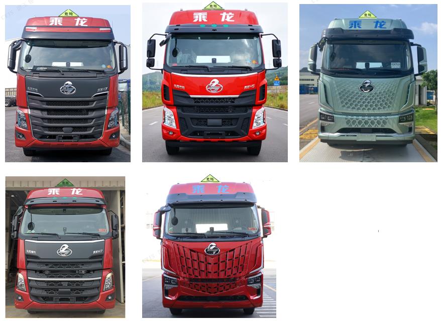 | 备注 | 选装H5面罩,选装H7B面罩,选装H5B高顶驾驶室,选装备胎装配位置,选熏黑大灯,选发光商标,选导流罩,装高顶驾驶室时,到驾驶室顶部的外形尺寸高为3600或3690,到危险品标志灯顶部的外形尺寸高为3820或3880,当装导流罩时,其外形尺寸高为3900或3940,选装银色前格栅,选装黑色前面板,选装车门下饰板,可选驾驶室脚踏板饰板,可驾驶室包角板,可选新车贴,可选侧志标灯位置,选装前格栅外形,选装后视镜,选装空滤进气道,选装绿色玻璃,选装挡雨板,选装侧窗,选装遮阳罩,选装金色字牌,安装带卫星定位功能的行驶记录仪.安装限速装置,限速80km/h.前桥装盘式制动器,排气管前置,储气筒型号3513020-DFLZ,3513030-DFLZ对应1000kPa工作气压,3513040-DFLZ,3513050-DFLZ对应1200kPa工作气压.可选LED光源大灯,可选灰色前面板,可选空滤位置,可选储气筒位置,可选后桥气室位置,可选后处理隔热罩外形,可选顶置空调,可选双气瓶布置,可选车门外观,可选气瓶外观,EBS3仅配后鼓式制动器,广西龙行未来科技服务有限公司的轮胎爆胎应急安全装置仅用于轮辋规格为9.00×22.5的轮胎,轴距/牵引座中心至半挂牵引车辆最前端的距离/与半挂牵引车匹配的半挂车牵引销中心轴线到半挂车最后端水平距离对应关系:3800+1350/5750/11350,4300+1350/6250/10850 | ||||||||||
