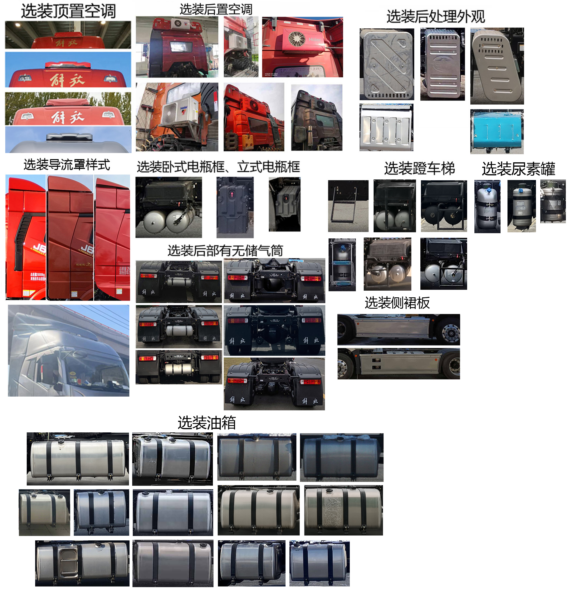 | 备注 | 选装导流罩,选装平顶驾驶室,选装油箱,贮气筒,驻车空调系统,进气道位置,蹬车梯,选装后处理外观,脚踏板,选装驾驶室前部无“中国一汽”标识.高度对应关系:3980,3780,3922,3920(高顶导流罩),3560,3360,3660,3760(高顶),3060,2860(平顶).长度对应关系:6255=1500+4000+755,6455=1500+4000+955,6455=1500+4200+755,6655=1500+4200+955,6400=1645+4000+755,6600=1645+4000+955,6600=1645+4200+755,6800=1645+4200+955,6895=1645+4200+1050,6550=1500+4000+1050,鞍座最大允许质量对应关系(kg):11065对应整备质量6805准乘2人,11000对应整备质量6805准乘3人,准拖挂车总质量对应关系:35000对应整备质量6805准乘3人,35065对应整备质量6805准乘2人.车速89km/h:对应前后鼓式制动器,对应LDWS,FCW生产企业(北京经纬恒润科技有限公司),类别Ⅱ,装备ABS,装备ESC(WABCOESC,CM-ESC),无驾驶室爆胎应急安全装置标示,无轮胎气压监测装置,无AEBS;车速120km/h:对应前轴鼓式制动器后轴盘式制动器,对应前非独立式钢板弹簧后非独立式空气悬架,对应LDWS,AEBS生产企业(采埃孚(上海)管理有限公司),类别Ⅰ,装备EBS,装备ESC(WABCOESC),装备驾驶室爆胎应急安全装置标示,装备轮胎气压监测装置,对应12R22.5,295/80R22.5轮胎. | ||||||||||