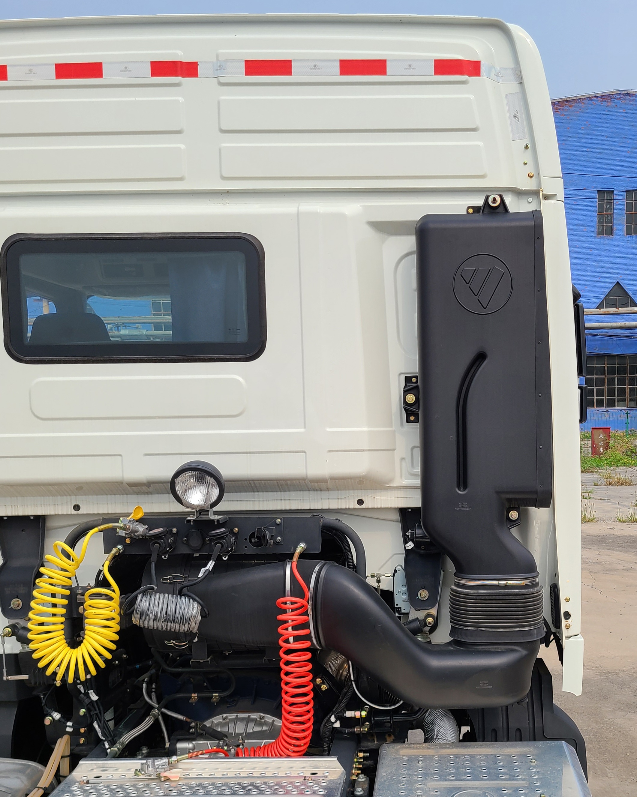 | 驾驶室轮胎爆胎应急安全装置标示 |