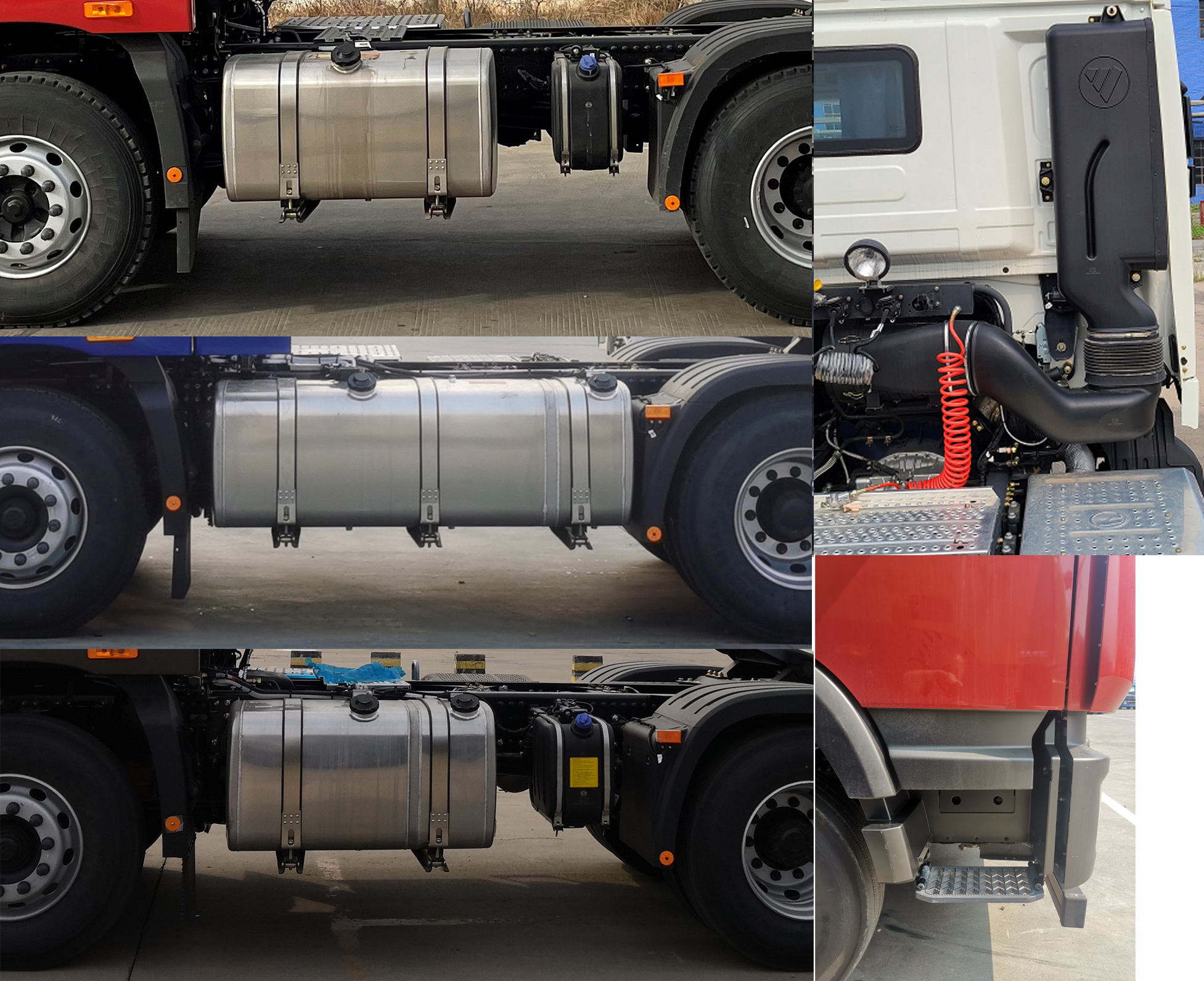 1、选装前围装饰件,脚踏板,燃油箱型式,高位进气.选装护轮罩.选装后部灯具.选装后围标识. 2、整备质量/机械连接装置垂直静载荷/牵引车辆准拖挂车总质量(kg)对应关系:8100/16770/40000,8500/16370/40000,8870/16000/40000. |