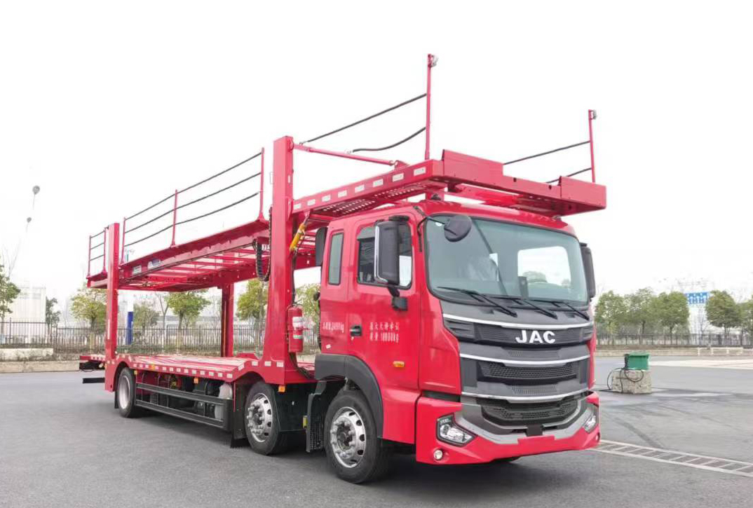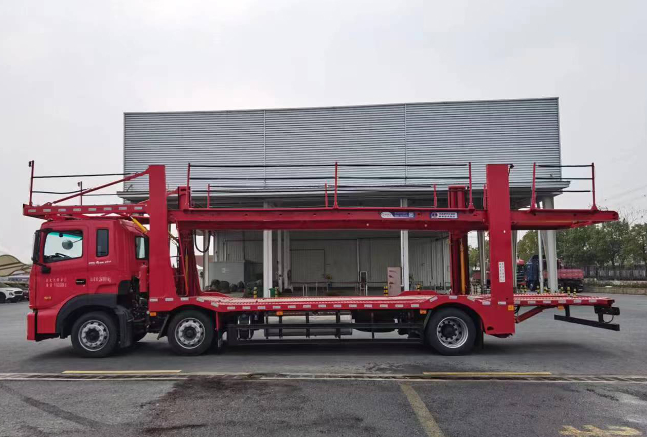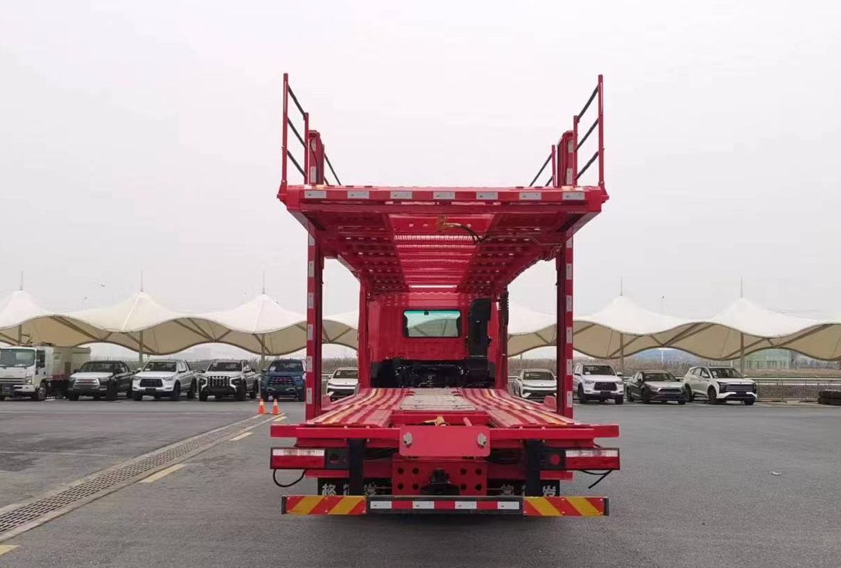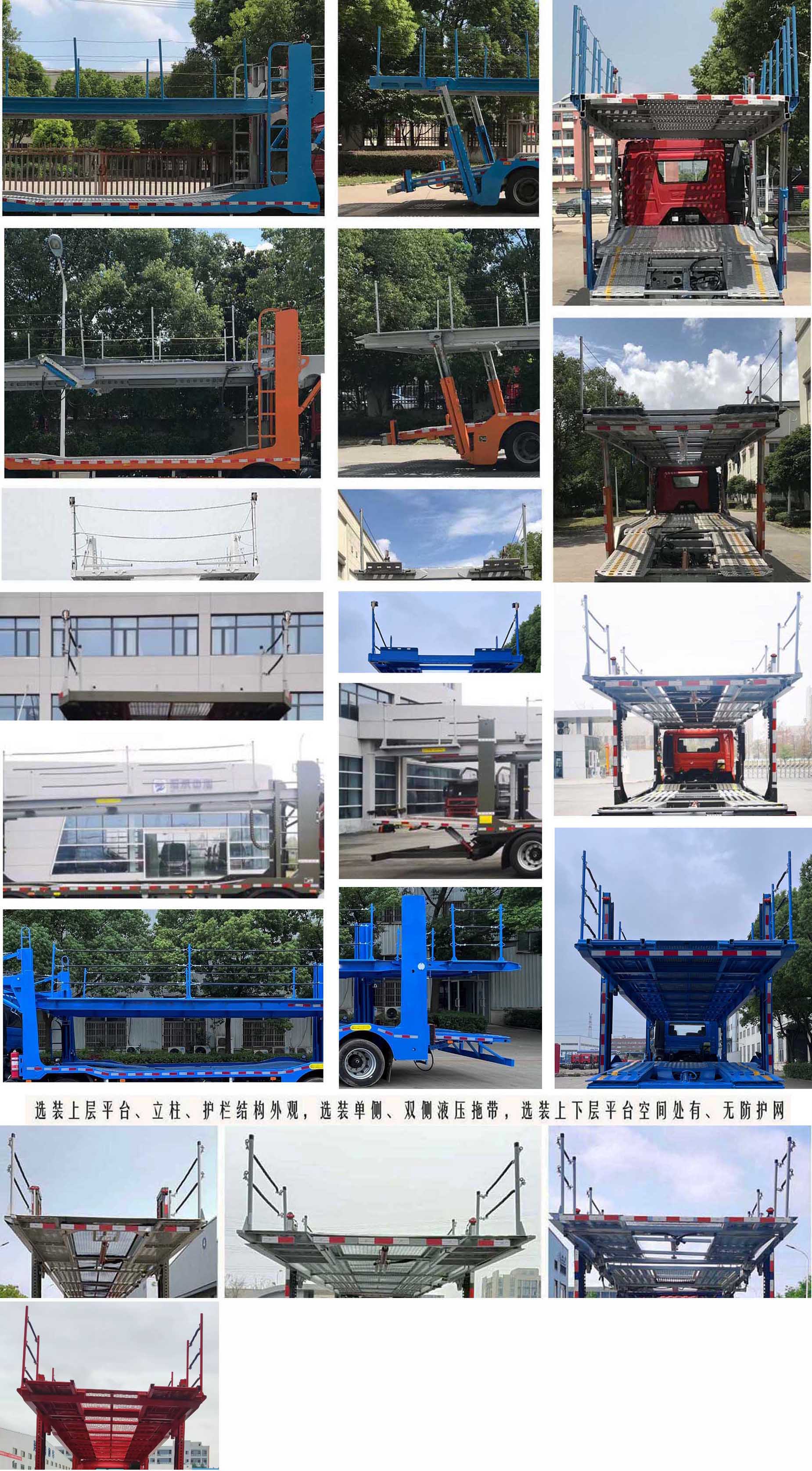 1.后下部防护装置在连接中置轴车辆运输挂车的时候可拆除;2.选装货箱.选装上层的平台外观.选装上层立柱外观.选装上层护栏结构外观.选装单侧、双侧液压拖带.选装上下层平台空间处有防护网或无防护网状态.选装蓄电池.选装蓄电池盖板.选装后视镜;3.准拖挂总质量(kg)/最大列车总质量(kg)/比功率(kW/t),18000/42900/5.8,17480/42380/5.9,17000/41900/6.0,15800/40700/6.2,15000/39900/6.3;4.与牵引货车匹配的中置轴挂车前回转半径(≥mm)/牵引杆连接器中心距牵引货车后轴/轴组中心的距离(mm)/牵引杆挂环中心距牵引货车最后端水平距离(mm)/牵引杆伸入量(mm)对应关系为2580/1585/1940/1940,2540/1635/1900/1900,2520/1665/1870/1870,2510/1675/1860/1860,2460/1735/1800/1800。 |