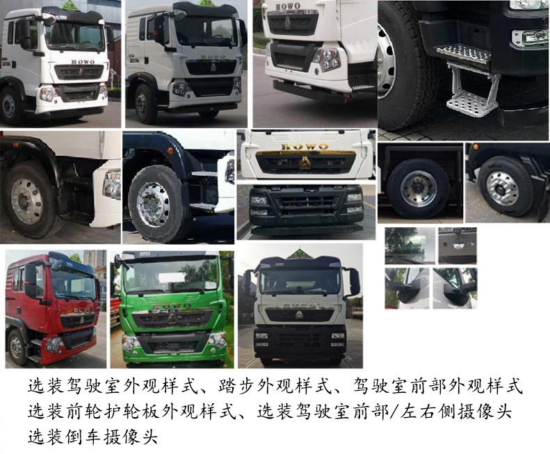 | 备注 | 选装驾驶室外观样式、踏步外观样式、驾驶室前部外观样式、选装前轮护轮板外观样式、选装驾驶室前部/左右侧摄像头、选装倒车摄像头。选装走道平台、爬梯样式。整车长度/前悬/轴距/后悬的对应关系为(mm):11850/1430/1800+3775+1400/3445,11850/1430/1800+4575+1400/2645,11850/1500/1950+3800+1400/3200,11850/1500/1950+4600+1400/2400. | ||||||||||