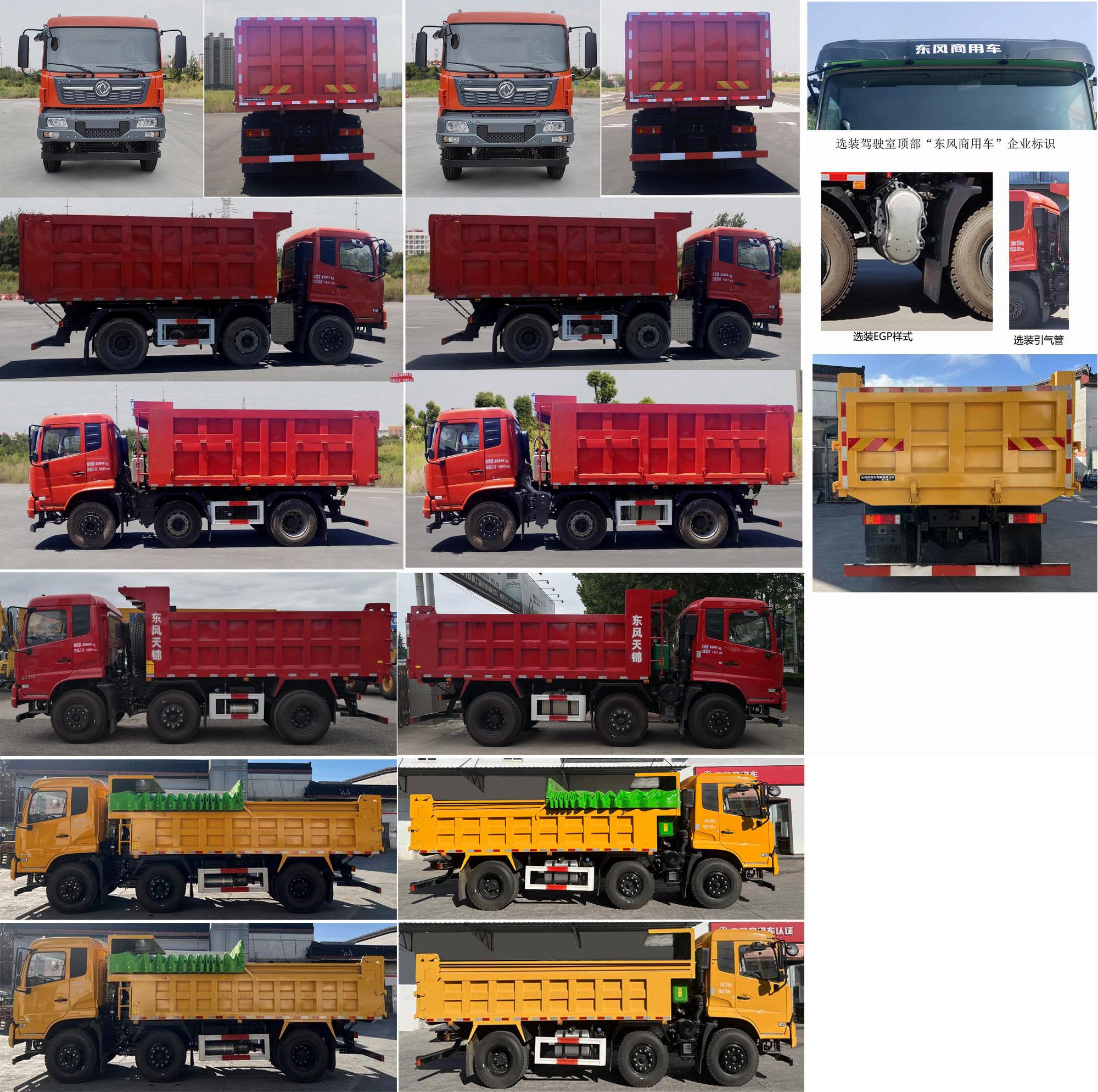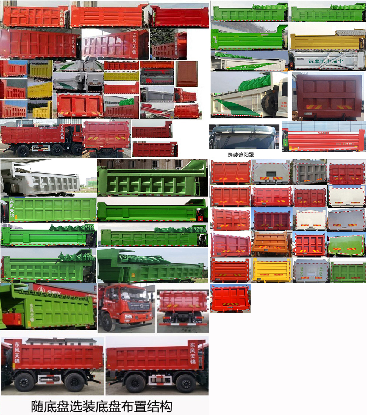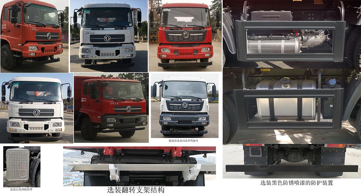外廓尺寸长/轴距/后悬对应关系:7880/1850+3000/1555;7925/1850+3000/1600;8080/1850+3000/1755;8125/1850+3000/1800;8380/1850+3000/2055。驾驶室顶部装饰灯为选装件,选装驾驶室,选装环保盖,选装货厢结构,选装底盘布置结构,选装后处理隔热罩,选装翻转支架结构,选装黑色防锈喷漆防护装置,选装油箱型号及位置,选装储气筒位置,选装电瓶框位置,选装尿素罐位置,选装干燥器位置,选装铝合金储气筒,选装后部号牌板位置,选装EGP样式,选装引气管,选装驾驶室顶部“东风商用车”企业标识。 |