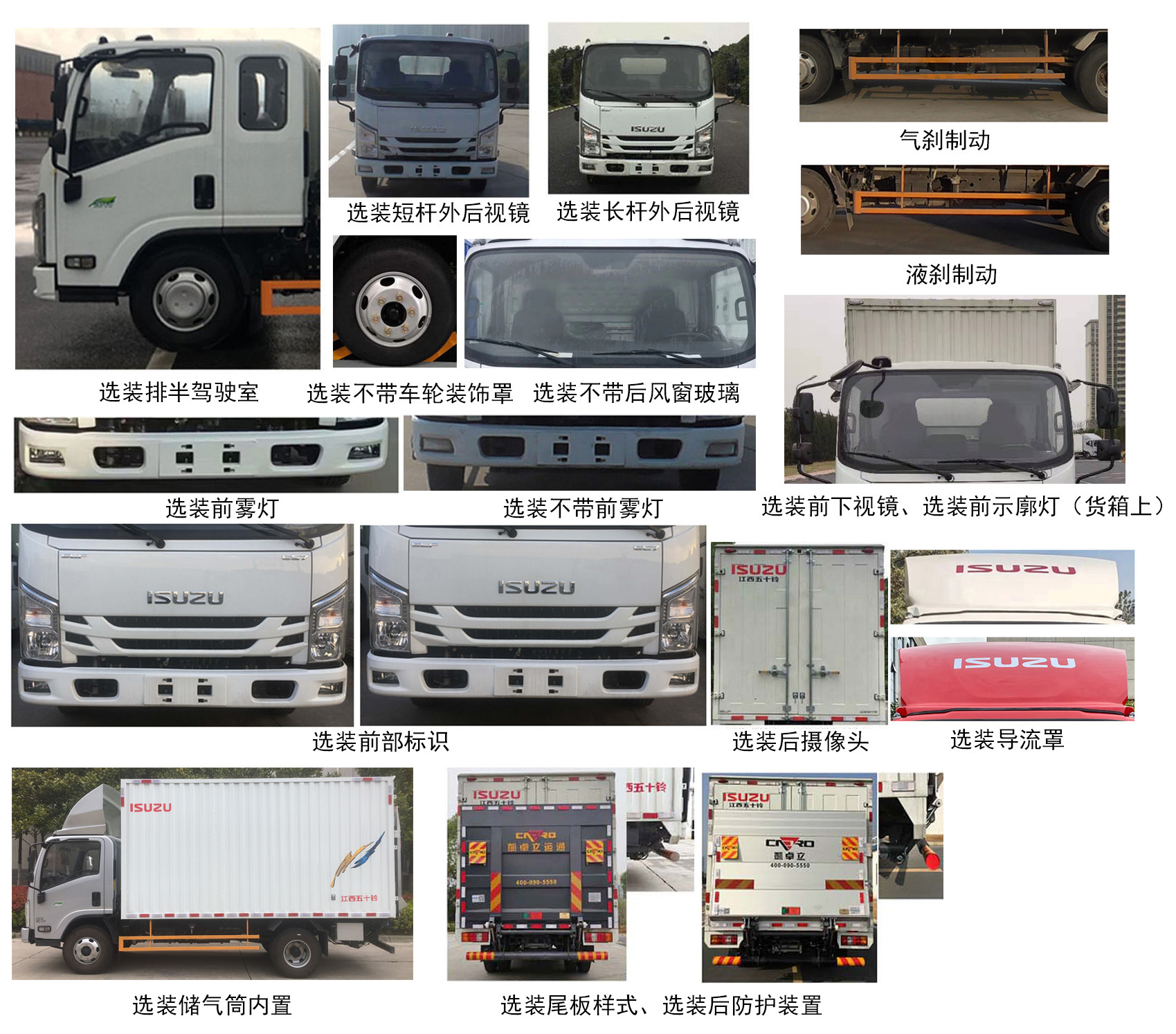 1.整车尺寸/货箱尺寸对应关系:5995×2380,2360×3250/4200×2300×2200;5995×2180,2160×3145/4200×2100×2100;5995×2130,2110×3090/4200×2050×2050;5995×2380×3250/4170×2300×2200;5995×2360×3145/4170×2300×2100;5995×2180×3145/4170×2100×2100;5995×2110×3145/4170×2050×2100;5995×2130×3090/4170×2050×2050;5995×2380,2360×3250/4080×2300×2200;5995×2180,2160×3145/4080×2100×2100;5995×2130,2110×3090/4080×2050×2050;5995×2380×3250/3780×2300×2200;5995×2180,2160×3145/3780×2100×2100;5995×2130,2110×3090/3780×2050×2050;5995×2380,2360×3250/3680×2300×2200;5995×2180,2160×3145/3680×2100×2100;5995×2130,2110×3090/3680×2050×2050。2.选装单排驾驶室,货箱栏板内尺寸长/前轴到货箱前壁内侧的距离对应关系:3780/1060,4080/760,4170/670,4200/640;选装排半驾驶室,货箱栏板内尺寸长/前轴到货箱前壁内侧的距离对应关系:3680/1160,3780/1060。3.发动机型号/发动机最大净功率/最大扭矩/燃料箱加注口和通气口与排气管的出气口端距离/主减速器速比/变速器型号/各档位传动比一一对应分别为:4JJ1GJ/122kW/450N.m/(780/550mm)/4.625/(6MTI420LA,6MTI420LB)/(5.979/3.434/1.862/1.297/1.000/0.759/倒挡5.701),JE493ZLQ6G/83kW/285N.m/(950/790mm)/5.857/(5MTI280SF,5MTI280SG)/(4.717/2.513/1.679/1.000/0.719/倒挡4.497),JE493ZLQ6K/91kW/350N.m/(700/380mm)/6.142/(5MTI280NC,5MTI280ND)/(4.717/2.513/1.679/1.000/0.719/倒挡4.497)。4.选气刹制动时,对应ABS系统型号/生产企业:CM4XL-4S/4M /广州瑞立科密汽车电子股份有限公司,对应制动衬片型号/生产企业:3100 100-G01 073/句容市宝亚汽车摩擦材料配件有限公司,对应制动总泵型号/生产企业:3514004/瑞立集团瑞安汽车零部件有限公司,对应制动鼓型号:CA100090790-51/JMC1065-A2,对应制动蹄型号/生产企业:3100 100-G01/江苏恒力制动器制造有限公司,对应制动间隙自动调整装置型号/生产企业:110/125/隆中控股集团股份有限公司和宁波合力制动系统有限公司和绍兴驰达汽车配件制造有限公司。选液刹制动时, 对应的气刹系统的储气筒/压缩空气干燥、油水分离装置/压力测试连接器等配置不适用,对应ABS系统型号/生产企业分别为:3550A500,APG3550500A/浙江亚太机电股份有限公司,对应制动衬片型号/生产企业:JIM320100/珠海格莱利摩擦材料股份有限公司,对应制动总泵型号/生产企业:CVH5E/浙江万向系统有限公司杭州分公司,对应制动鼓型号:CA100090810-51/JlM320100,对应制动蹄型号/生产企业:JIM320100/珠海格莱利摩擦材料股份有限公司,对应制动间隙自动调整装置型号/生产企业:φ30.16/φ28.57/浙江亚太机电股份有限公司和江西江铃集团深铃汽车零部件有限公司。5.选装不同样式货箱外观。6.选装排半驾驶室。选装导流罩。选装前部标识。选装后摄像头。选装前雾灯。选装前示廓灯(安装在货箱上)。选装短杆外后视镜。选装长杆外后视镜。选装前下视镜。选装不带起重尾板。选装不带后风窗玻璃。选装不带前雾灯。选装不带内后视镜。选装不带车轮装饰罩。选装不带备胎。选装尾板样式。选装后防护装置。选装储气筒内置。 |