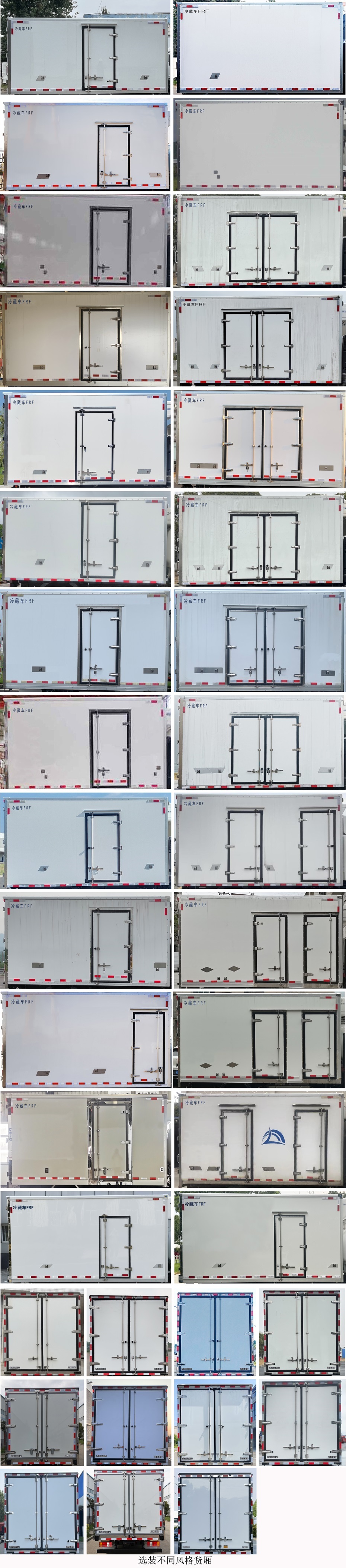 | 备注 | 制动型式为:液刹(液压制动)或气刹(气压制动);当为液压制动时:行车制动系统储气筒数量、压力测试连接器数量及气压制动的相关参数均为:不适用,ABS为武汉元丰(型号:YF8)/温州瑞立科密(型号:RL-109)/温州瑞立科密(型号:RL-203);当为气压制动时:ABS为浙江万安(型号:VIE ABS-II)/广州瑞立科密(型号:CM4XL-4S/4M)/广州瑞立科密(型号:CM-EBS),EBS为广州瑞立科密(型号:CM-EBS);选装不带液压尾板结构及不同形式后防护,选装不带导流罩,选装不同形式导流罩,选装上车踏板,选装不同风格货厢,选装不同材质液压尾板及不同外形后防护,选装货厢粘贴字标,选装前围装饰带,可取消液压尾板字标,可取消前围装饰字标,可取消驾驶室示廓灯,选装不同形式内后视镜,可取消导流罩字标,可取消内后视镜,选装液刹,选装不同外形制冷机组,可取消天线,选装不同样式轮辋,选装导流罩字标,选装储气简布置状态,选装电池托架样式,选装尾部监控装置。 | ||||||||||
