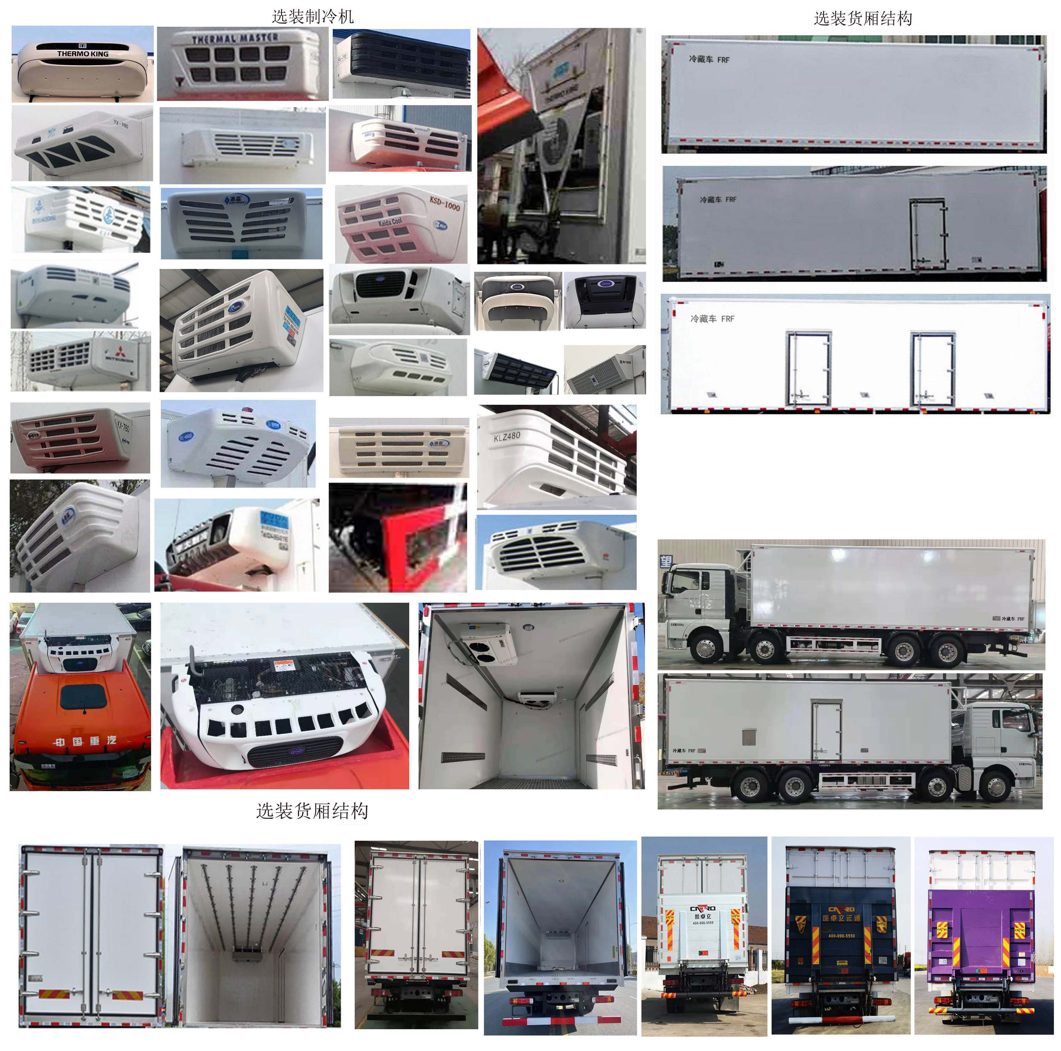 1.选装驾驶室,选装导流罩。选装单油箱。选装保险杠。选装前面罩。货厢可选装单开门,双开门和不开门型式。可选装其它厂家功率相同的制冷机组。车厢顶部封闭,不可开启。选装顶置空调。可不选装液压尾板,选装液压尾板时选装圆柱型后防护。整备质量为14100kg时,额定载质量为16770kg(2人)和16705kg(3人);整备质量为13000kg时,额定载质量为17870kg(2人)和17805kg(3人)。2.选装最高车速89km/h时仅配备ABS,可不选装轮胎气压监测系统、车道偏离预警系统和车辆前向碰撞预警系统,不装配AEBS+EBS+ESC;选装最高车速110km/h时仅配备AEBS+EBS+ESC,仅对应前盘后鼓式制动型式。3.选装295/80R22.5 18PR型号轮胎时仅可选装MC11.43-61,MC11.46-61,MC13.48-61,MC13.50-61,MC13.54-61,MC11H.43-61,MC11H.46-61,MC11H.49-61,MC11H.46T-61,MC13H.48-61,MC13H.51-61,MC13H.54-61,MC13H.57-61型号发动机。4.制动器衬片更换报警装置仅适用于盘式制动器。5.冷藏车选装3个车厢门,选装2个车厢门。 |