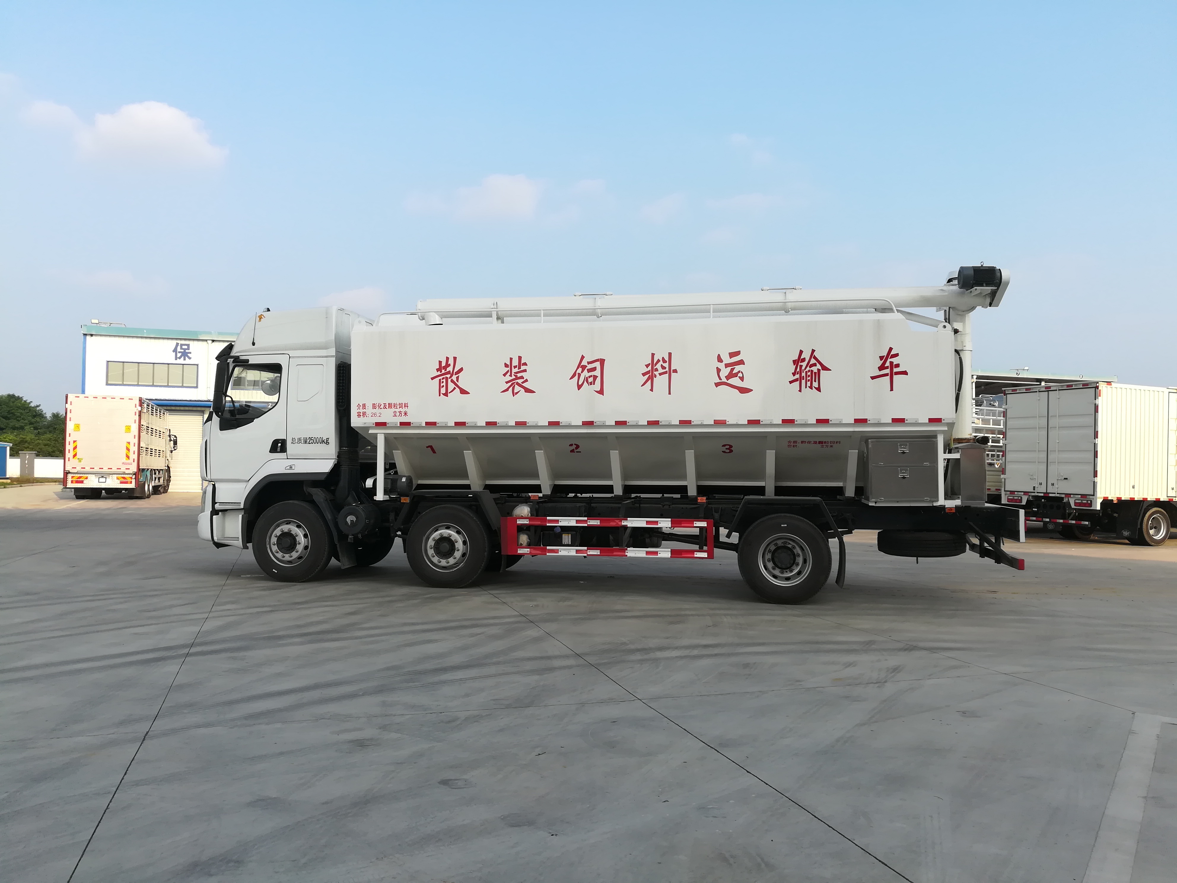 顶部封闭不可开槽,后部不可开启。随底盘选装保险杠、翼子板,选装后视镜,选装车门下饰板,选装卧铺侧窗,选装绿玻璃,选装平顶驾驶室,选装导流罩。选装后部绞龙电机的安装型式及电控箱安装位置。该车主要用于饲料的运输作用,主要专用装置是饲料仓和上下料的绞龙机构。外廓尺寸长/后悬/轴距对应关系说明: 10150/2605/2050+4050;11050/3105/2050+4450;10000/2455/2050+4050;10850/2905/2050+4450;9580/2535/2050+3550;9180/2135/2050+3550.发动机型号YCS06270-60对应轮胎11.00R20 18PR,12R22.5 18PR |